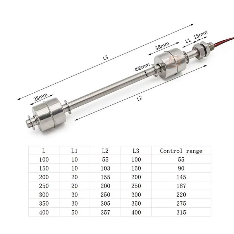 400mm Çift Şamandıralı Paslanmaz Sıvı Seviye Sensörü, iki ayrı sıvı seviye noktasını (örneğin minimum ve maksimum seviye) aynı sensör üzerinde algılayabilen çift çıkışlı bir sıvı seviye kontrol elemanıdır.