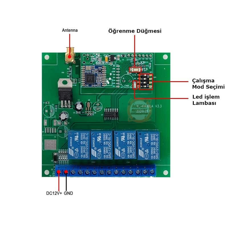 Dip switch ile mod seçimi, geri bildirim aç/kapa kontrolü