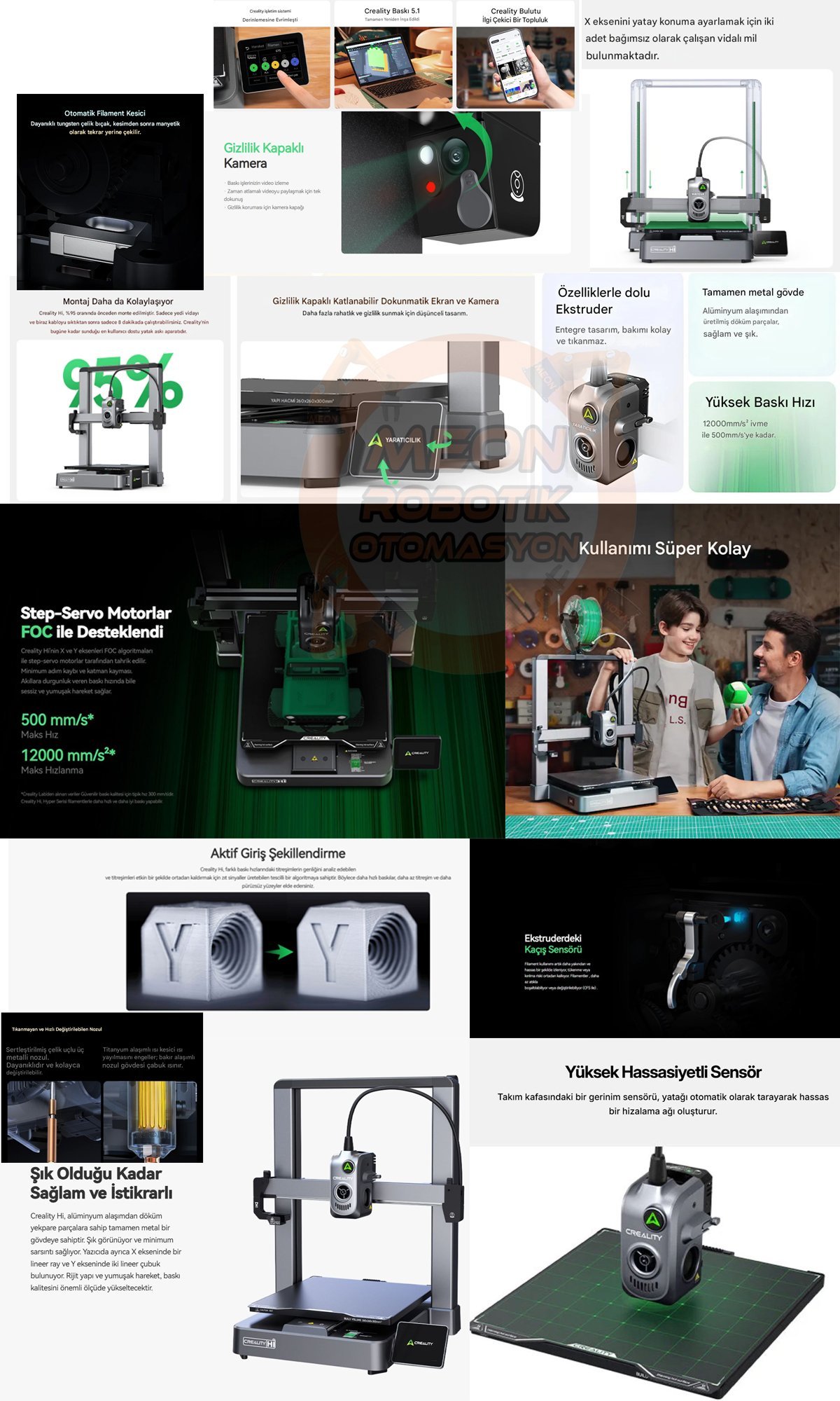 Yüksek hız, akıllı otomasyon ve dayanıklılığı bir arada sunan Creality Hi 3D Yazıcı, Meon Robotik Otomasyon güvencesiyle stoktan hızlı teslimatla satıştadır. Ev, ofis veya atölyenizde profesyonel düzeyde baskılar almak artık çok kolay!