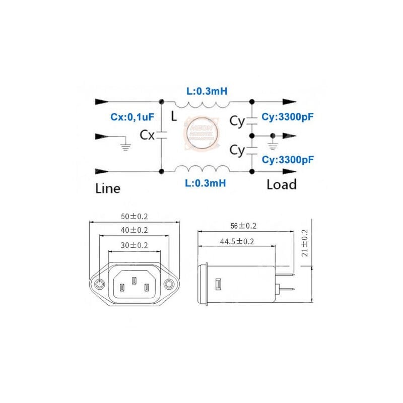 EMI Filtreli Soket 250V 10A C14 Erkek CW1D-10A-T Şebeke Gürültü Filtresi
