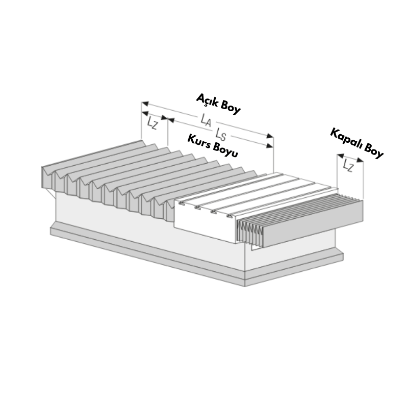 Körükler, makinenin kızaklarını, vidalarını ve hassas parçalarını dış etkenlerden korur. Bu sayede: