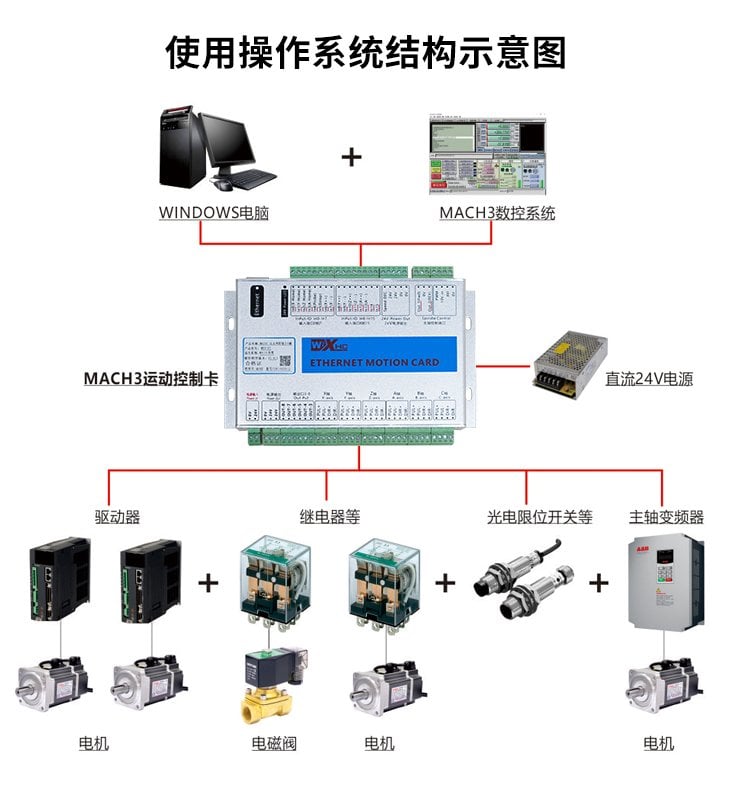 Sadece Windows işletim sistemi için uygun olan Mach3 tüm sürümlerini destekler, sadece Ethernet arayüzünü, IP iletişim adresi ayarlarına olan ihtiyacı destekler.